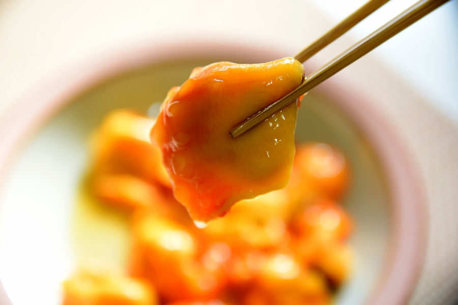 예쁜 선홍빛을 띈 멍게로 엄격하게
