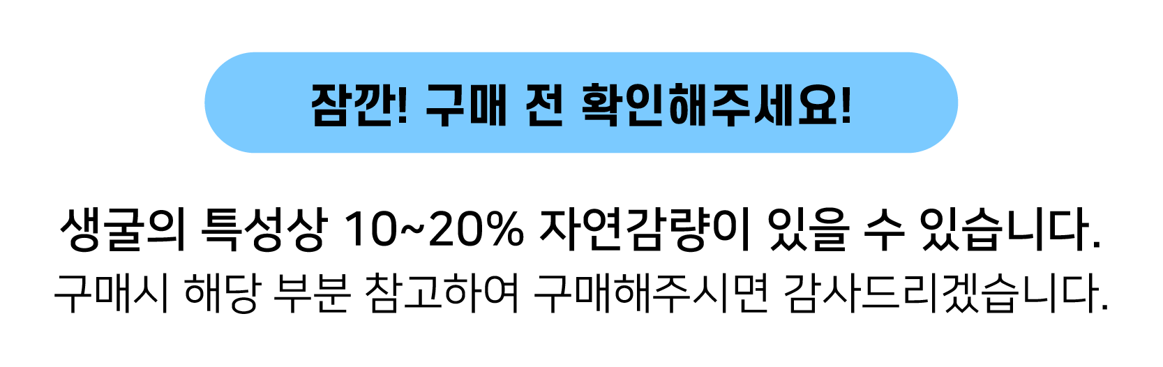 20% 내외의 수분감량이 발생할 수 있습니다