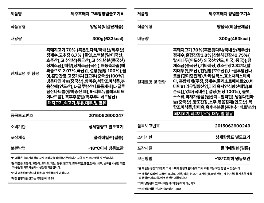※100% 제주 흑돼지※ 흑돼지 간장&고추장 불고기