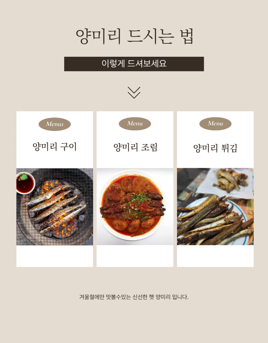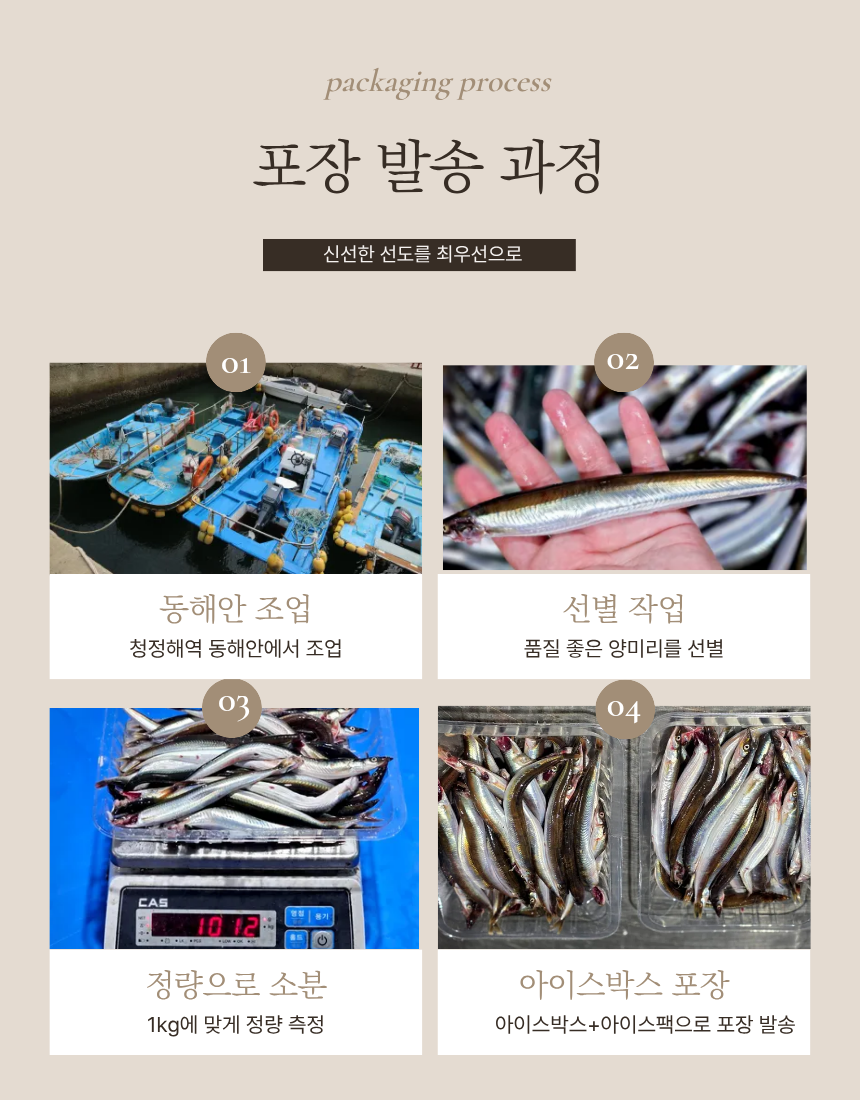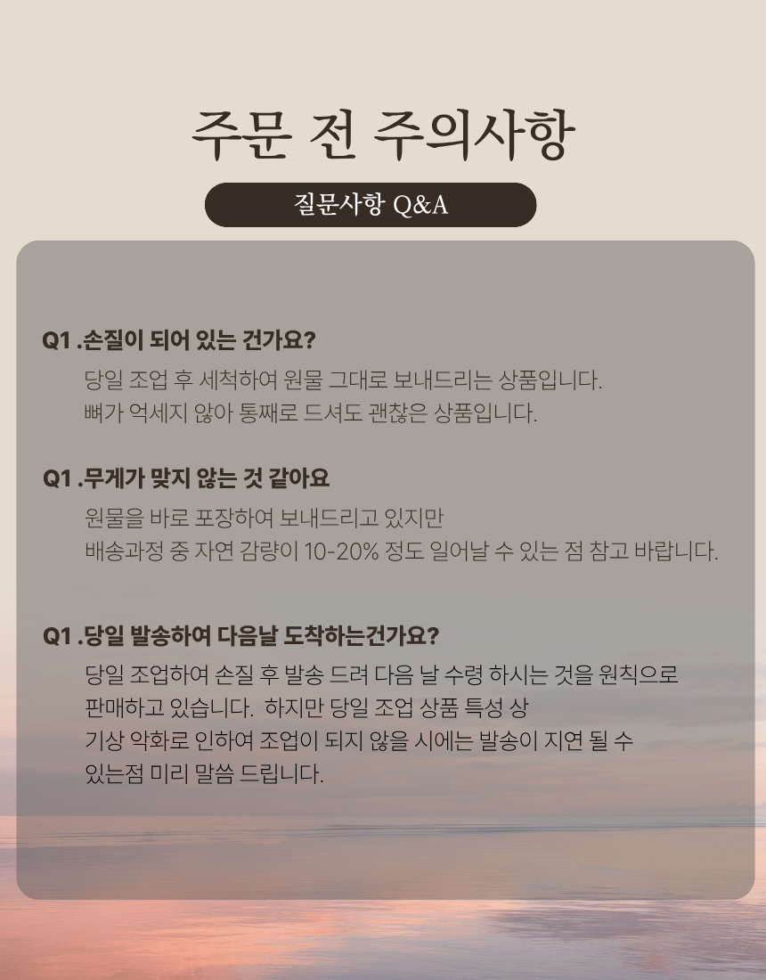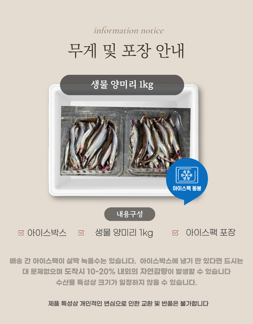 ※양미리 생물 및 조업 특성상 머리 쪽이 어망에 걸려 머리쪽이 찢어질 수 있는 점,