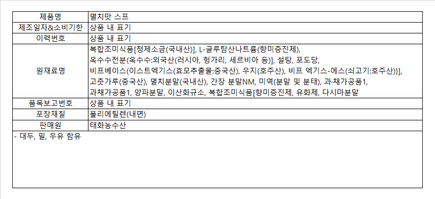 전용 멸치맛 스프로