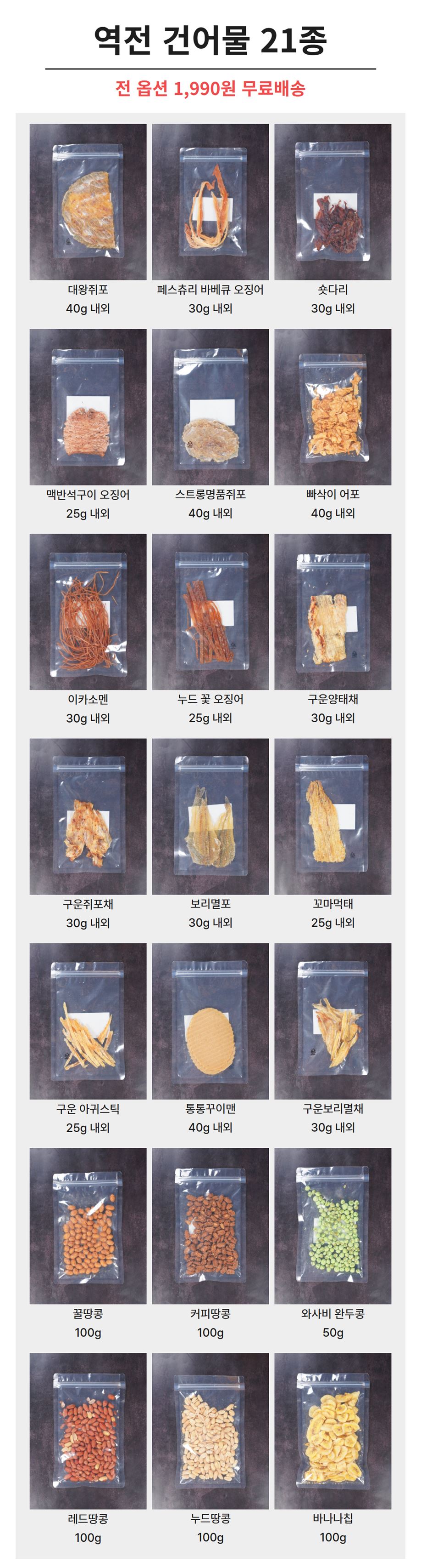 총 21종 건어물들 싸그리 준비했습니다!