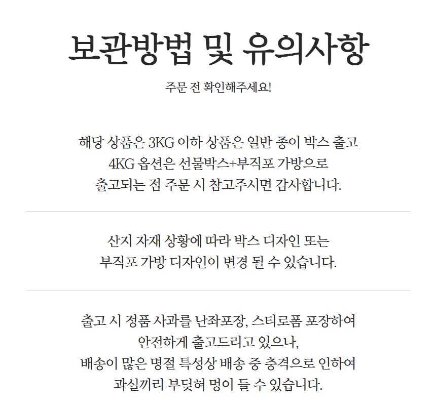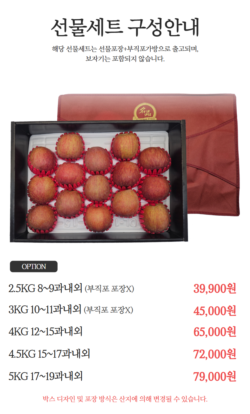 ※ 2.5kg, 3kg 옵션은 부직포 가방 포장이 아닌