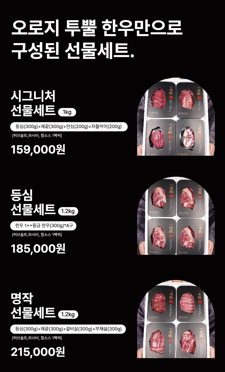 [한우 투뿔 / 42% OFF] 1++ 한우 시그니처 선물세트 1kg - 등심+채끝+안심+차돌박이