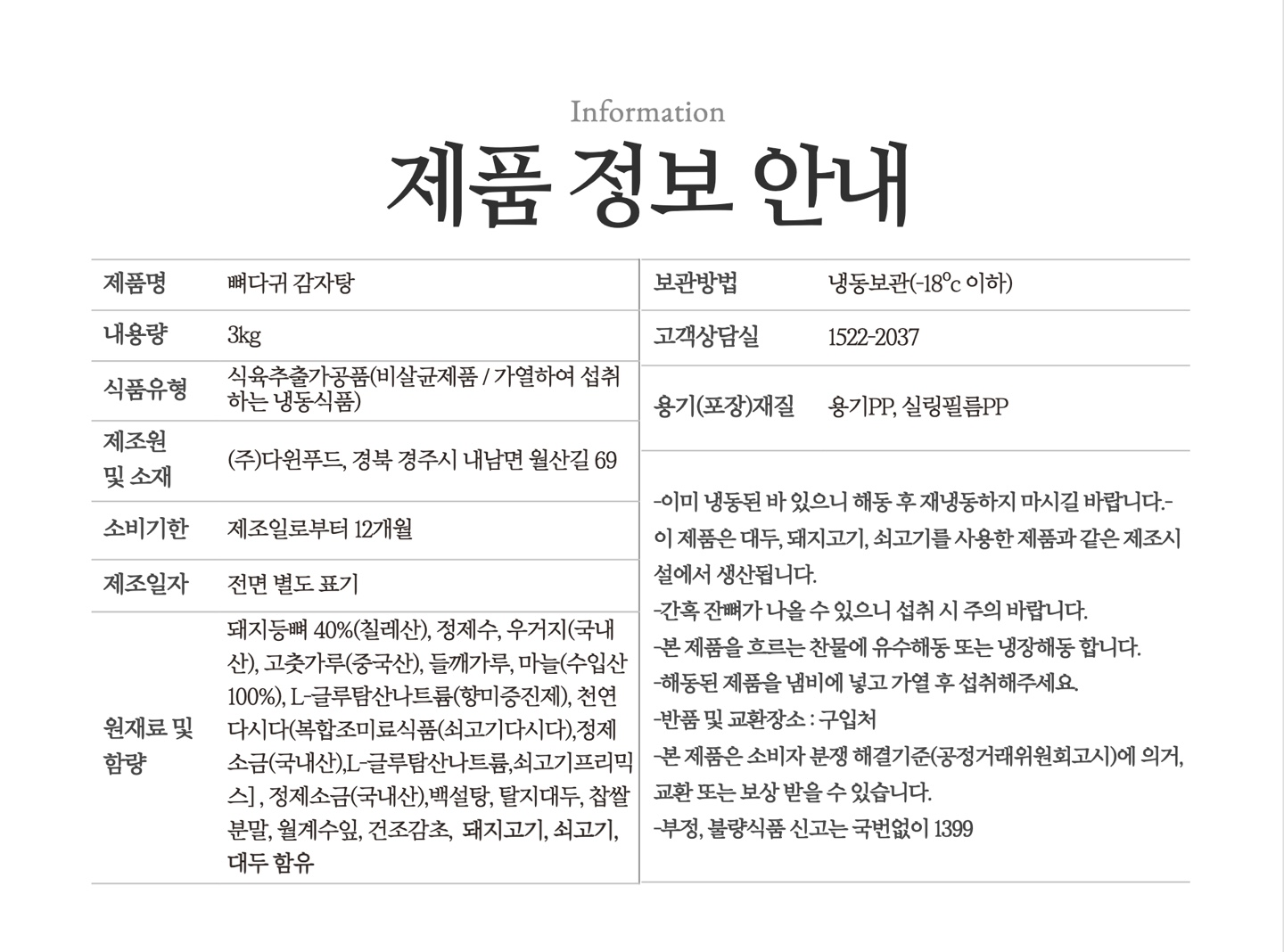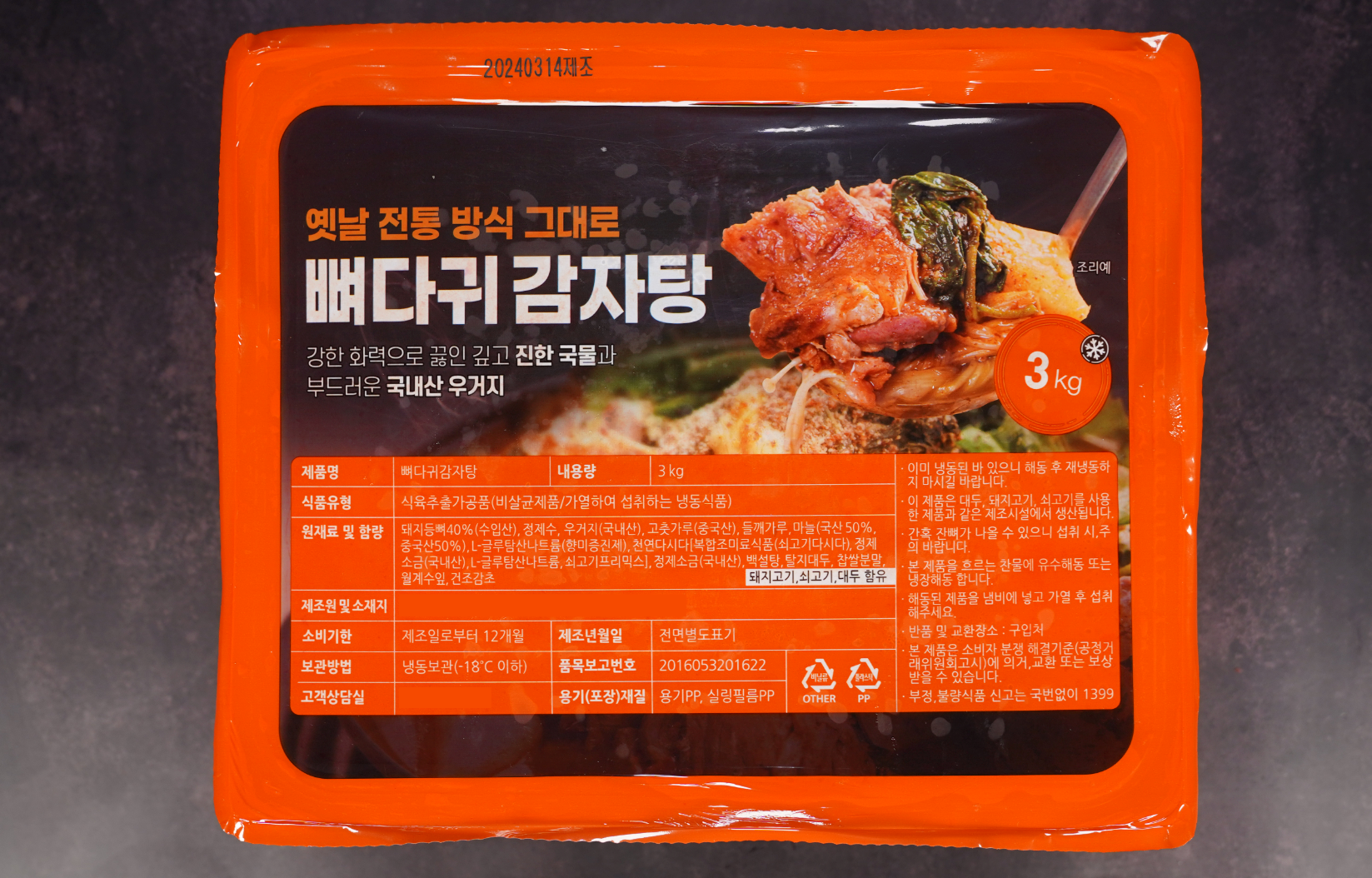 등뼈 우거지 감자탕 3kg 내외